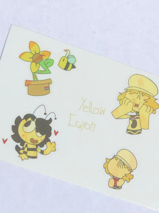 Welcome to Yellow's stickers sheet! Included with yellows is a flower, poses of yellow and a bee named Bliss who is Yellow's pet.